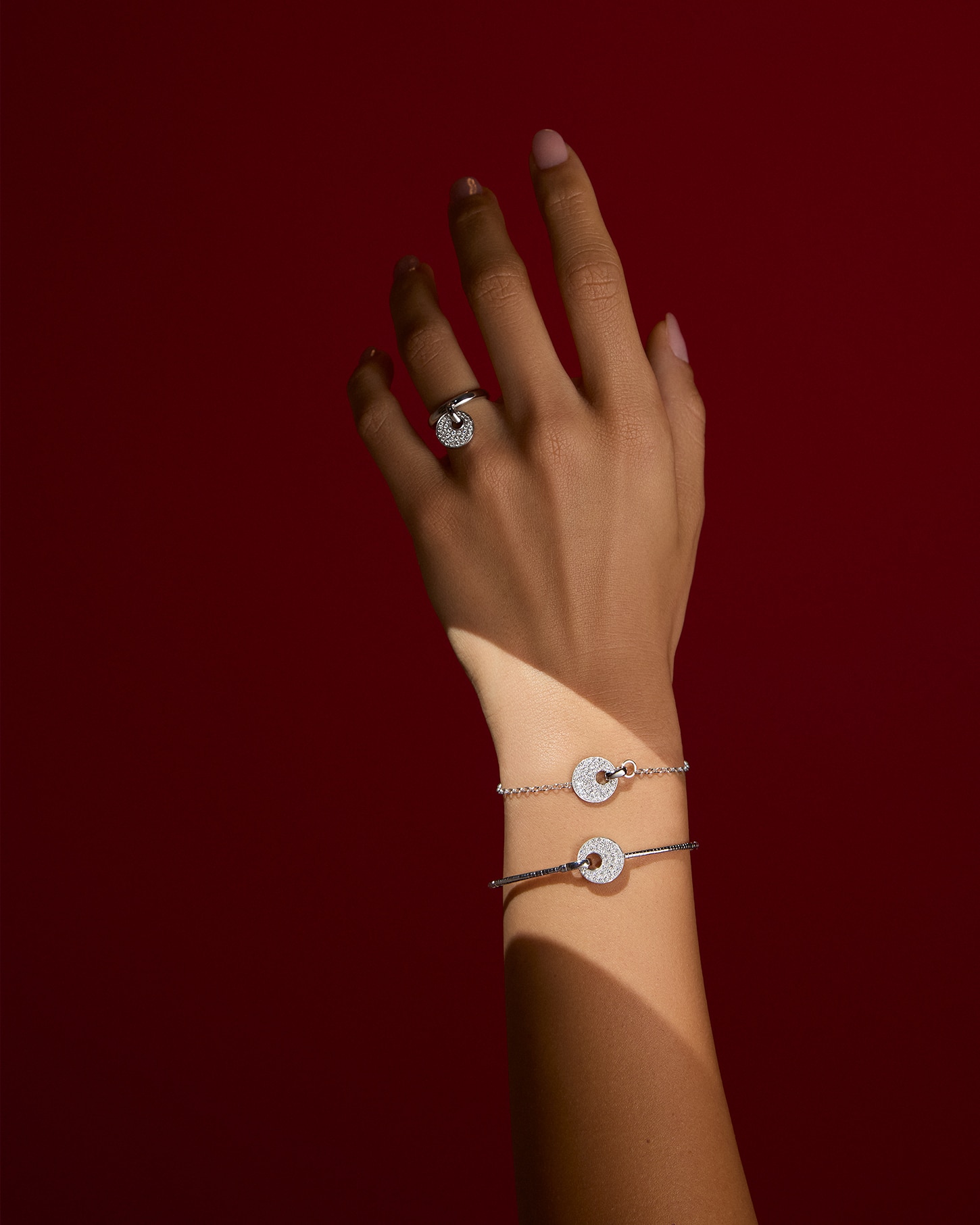 For Tavanti’s digital Christmas campaign we envisioned a still life shoot set against a deep red backdrop, rich and immersive, instantly evoking the festive season with refined elegance. The composition embraces a minimal luxury aesthetic, where every element is carefully balanced to highlight the purity and craftsmanship of the jewelry. Glossy surfaces and luminous reflections enhance the brilliance of each piece, creating a sophisticated interplay between light and precious materials. The result is a warm, iconic visual language designed to stand out across digital platforms.