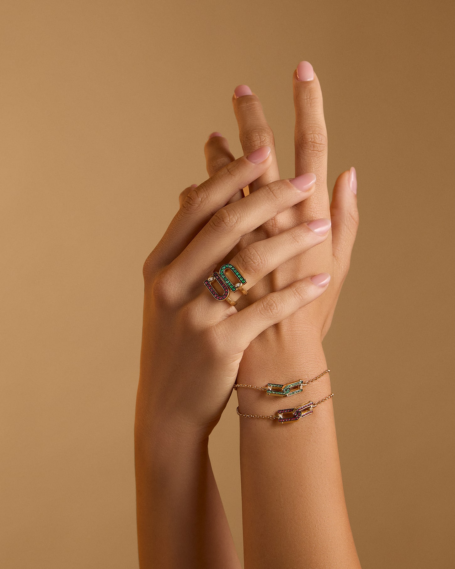 A digital campaign for jewelry, developed through still life and worn fashion imagery.